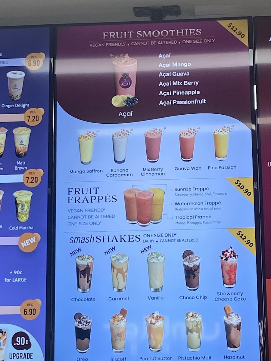 Add .90c to upgrade large All fruitea varieties available as slushy